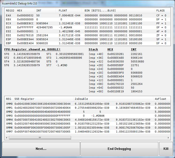 Schaut man sich dann an, was der Compiler gemacht hat, wird man feststellen, daß bspw. für "Standardfunktionen" wie Sinus/Cosinus/Wurzelziehen/uswusf. ein API-Call bzw. ein Call der "eigenen" Bibliotheken erfolgt. Dort wiederum wird u.a. sämtliches Errormanagement betrieben, was sich die Bibliothekenbauer in den letzten 30 Jahren nur vorstellen konnten, um ALLE vorstellbaren Fehler des Programmierers abzufangen und auszuwerten und anzuzeigen, damit um Himmels Willen nur kein Absturz bei irgendeinem Programm erfolgt. Das ist idR auch gut so, da meiner Erfahrung nach Programmierer sich sehr gerne darauf verlassen, dass sie absolut keine Fehler machen...