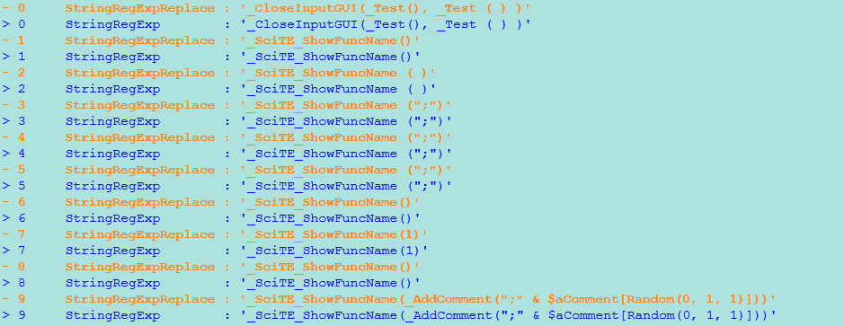 ConsoleWrite((@extended ? "- " : "! ") & $iNum & @TAB & "StringRegExpReplace : '" & $sStrip & "'" & @CRLF)