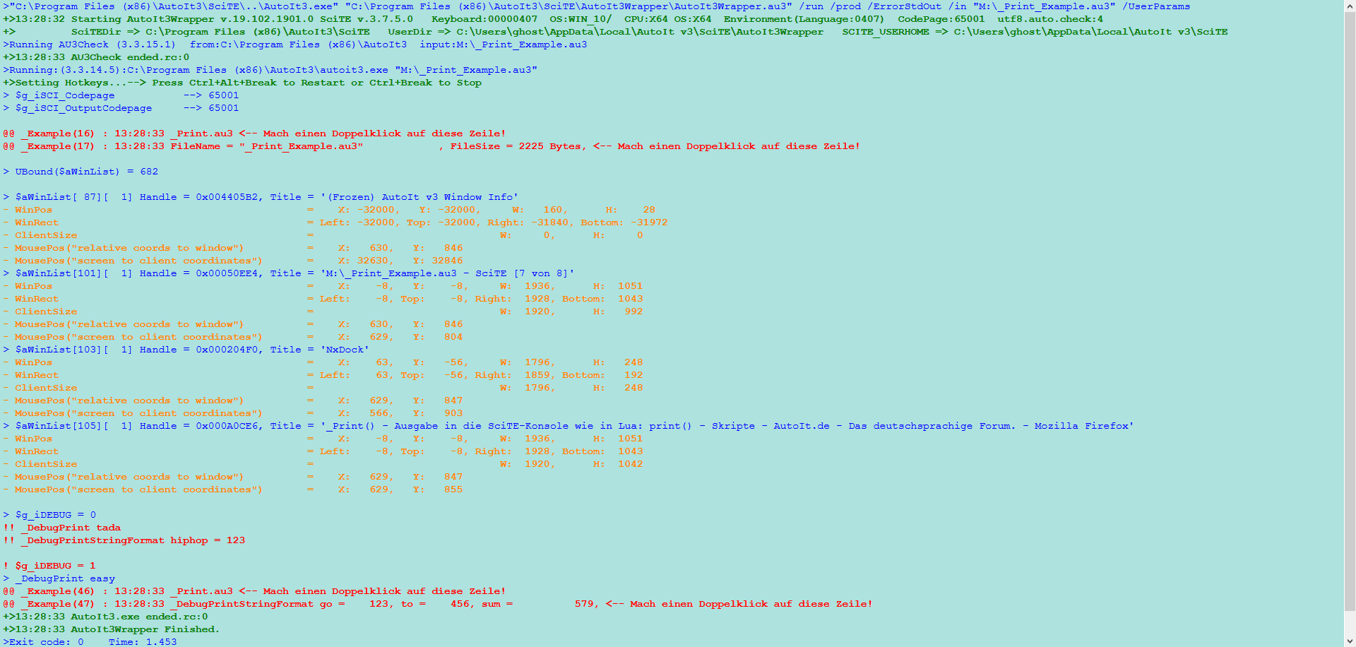 ConsoleWrite("@@ Debug line" & @TAB & @ScriptLineNumber & " var: $sCommand --> " & $sCommand & @CRLF & "!@ " & @TAB & "#Error: " & @error & @CRLF)