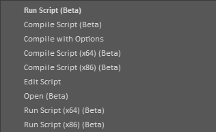 Die Kontextmenüeinträge sind bei mir nur sichtbar, wenn ich die Dateierweiterung *.au3 mit der AutoIt3.exe aus dem Beta-Verzeichnis verknüpfe...