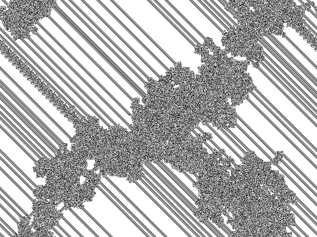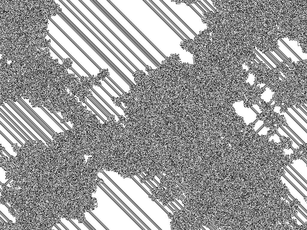 Alles anzeigen//Made by Sprenger120 //Date: 16.08.2012 #include <iostream> #include "EasyBMP.h" #include <random> #include <time.h> using namespace std; bool compareColors(RGBApixel& a,RGBApixel& b) { if (a.Blue == b.Blue && a.Green == b.Green && a.Red == b.Red) { return true; } return false; } void rotateDirection(bool fDirection,char& riDirect) { //false = left, true = right if (fDirection) { riDirect++; }else{ riDirect--; } if (riDirect > 3) {riDirect = 0;} if (riDirect < 0) {riDirect = 3;} } int main() { BMP bitmap; RGBApixel black; RGBApixel white; int iWidth = 1024; int iHeight = 768; __int64 iRounds = 5000000; int iCurrentPosX = iWidth/2; int iCurrentPosY = iHeight/2; char iDirection = 0; int iTimestamp = (int)time(NULL); bitmap.SetSize(iWidth,iHeight); std::srand(123312); black.Alpha = black.Blue = black.Green = black.Red = 0; white.Alpha = white.Blue = white.Green = white.Red = 0xff; for(__int64 iFinishedRounds = 0;iFinishedRounds<=iRounds;iFinishedRounds++) { if (iTimestamp != (int)time(NULL)) { cout<<"\rProgress: "<< ((iFinishedRounds*100) / iRounds) <<"% "; iTimestamp = (int)time(NULL); } switch (iDirection) { case 0: iCurrentPosX--; break; case 1: iCurrentPosY--; break; case 2: iCurrentPosX++; break; case 3: iCurrentPosY++; break; default: break; } if (iCurrentPosX == iWidth) {iCurrentPosX = 0;} if (iCurrentPosX < 0) {iCurrentPosX = iWidth-1;} if (iCurrentPosY == iHeight) {iCurrentPosY = 0;} if (iCurrentPosY < 0) {iCurrentPosY = iHeight-1;} if (compareColors(bitmap.GetPixel(iCurrentPosX,iCurrentPosY),white)) { //White bitmap.SetPixel(iCurrentPosX,iCurrentPosY,black); rotateDirection(true,iDirection); continue; }else{ bitmap.SetPixel(iCurrentPosX,iCurrentPosY,white); rotateDirection(false,iDirection); continue; } } bitmap.WriteToFile("test.bmp"); return 0; }