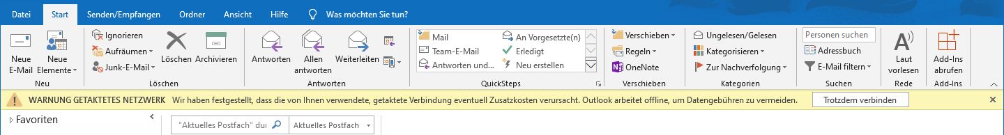 Outlook geht automatisch Offline, weil es bemerkt das das es eine getaktete Verbindung ist.