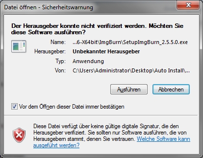 Und bei Win7 kommt halt immer beim ausführen diese Fenster...Man kanns von Windows Haus aus ja deaktivieren...