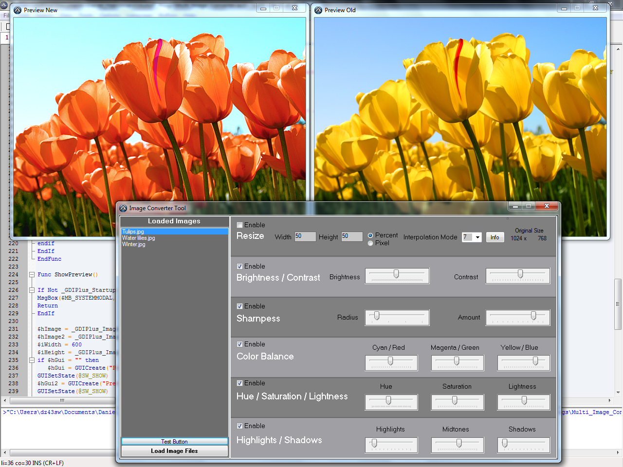 Ich arbeite gerade an einem Multiple-Image-Converter Programm, mit dem man z.B. seine Urlaubsbilder schnell und einfach anpassen und verkleinern kann. Dabei besteht die Möglichkeit alle Bilder mit den selben Einstellungen zu konvertieren, jedoch möchte ich auch die Möglichkeit anbieten, jedes Bild nacheinander anzupassen zu können (Was z.B. für Fotografen für Farbbalance etc.) sinnvoll ist.