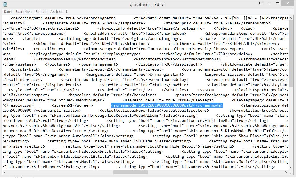 Fals bei "screenmode" etwas anderes steht, im normalfall: