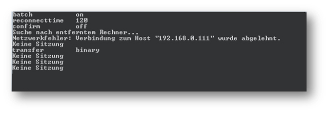 das Problem ist (glaube ich), daß mein FTP-Server erst nach einer Minute Antwortet.