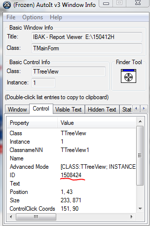 Aus einem speziellen Programm in unserer Firma sollen Berichte (meistens so 50 oder mehr) einzeln angeklickt und in eine Excel-Datei exportiert werden. Ich hab das ganze jetzt soweit verbessert, dass ich in Excel selbst alles mit VBA löse (ausgelöst durch Autoit mit strg+k). Geht schon mal sehr viel schneller.Hab mir ControlClick mal angeschaut. Wo bekomme ich denn die ControlID her? Klingt ja erstmal super, da es dann nicht mehr alles kaputt macht, wenn ich das Fenster verschiebe