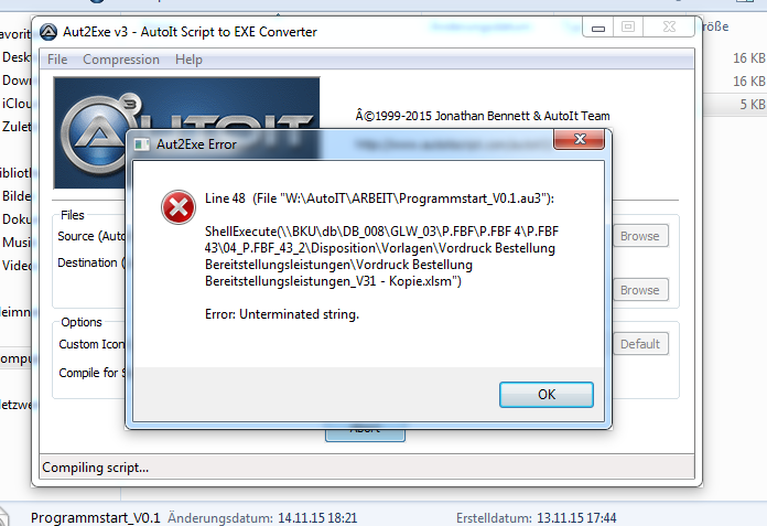 Also habe ich mir Autoit auf mein MacBook (via Parallels) installiert und dort versucht über die "Compiler Script to .exe" das ganze umwandeln zu lassen.