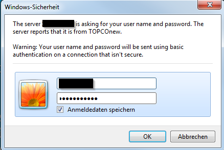 Nun öffnet sich beim öffnen der Seite die Anmeldemaske (siehe Screenshot).