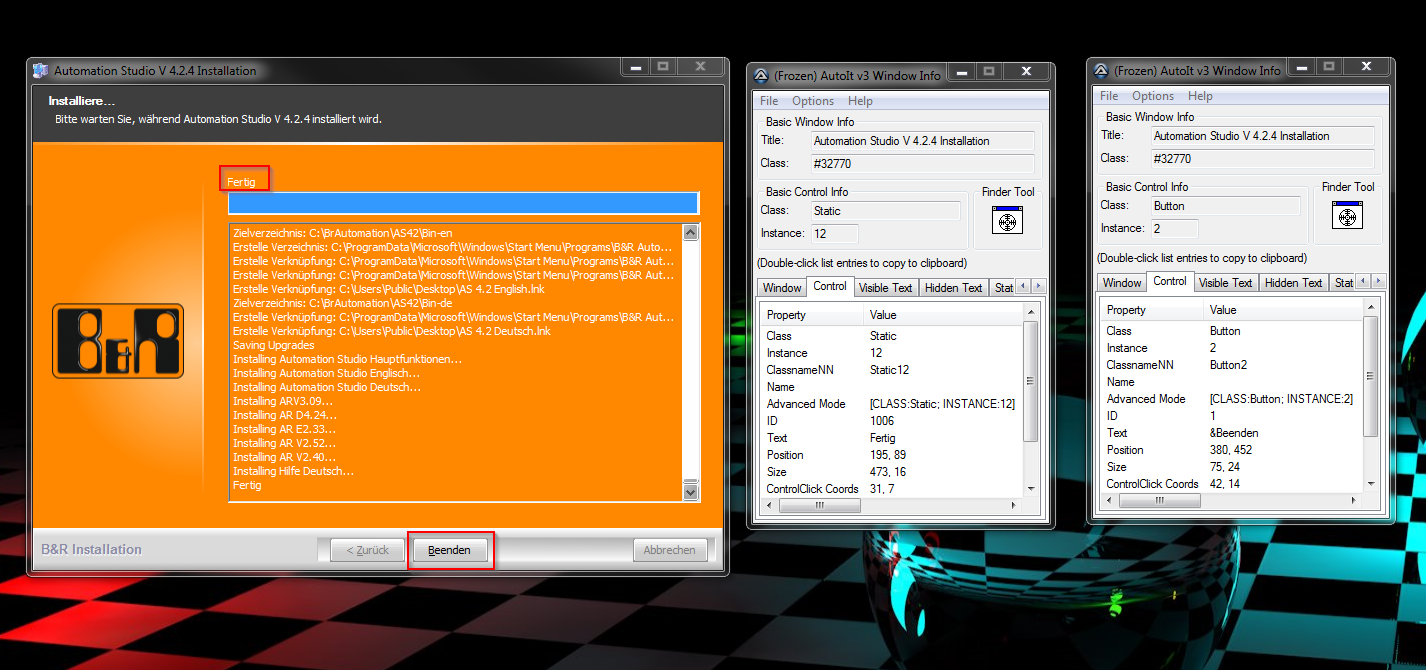 Ich bräuchte eine Idee wie mein Skript erkennt, dass die Installation fertig ist und dann den "Beenden-Button" klickt.Über den Prozess kann ich es leider nicht erkennen und die Exe hat leider auch keine "Silent"-Parameter.