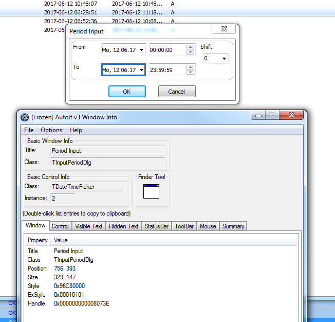 Per Window Info habe ich mir die erzeugten Klassennamen besorgt und ein paar Tests gefahren, aber bis auf das Öffnen des Kalenders läuft es noch nicht so wie geplant :/