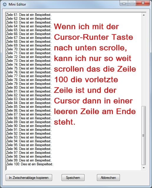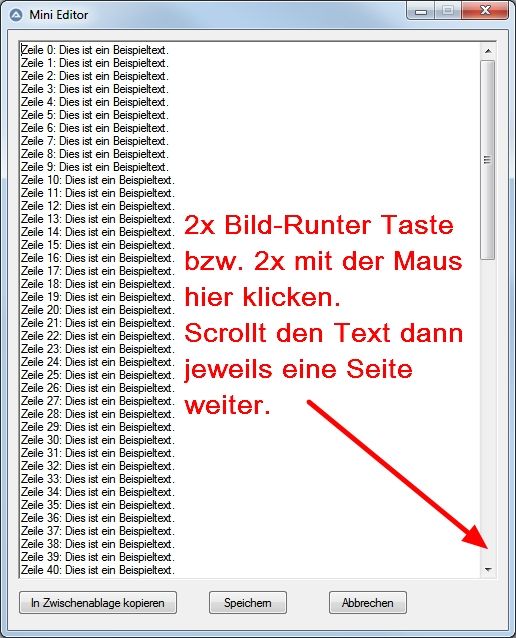 Ich habe bei GUICreate zwar die Option $WS_VSCROLL mit angegeben, aber die bewirkt, außer dass eine Scrollbar rechts angezeigt wird, rein gar nichts.