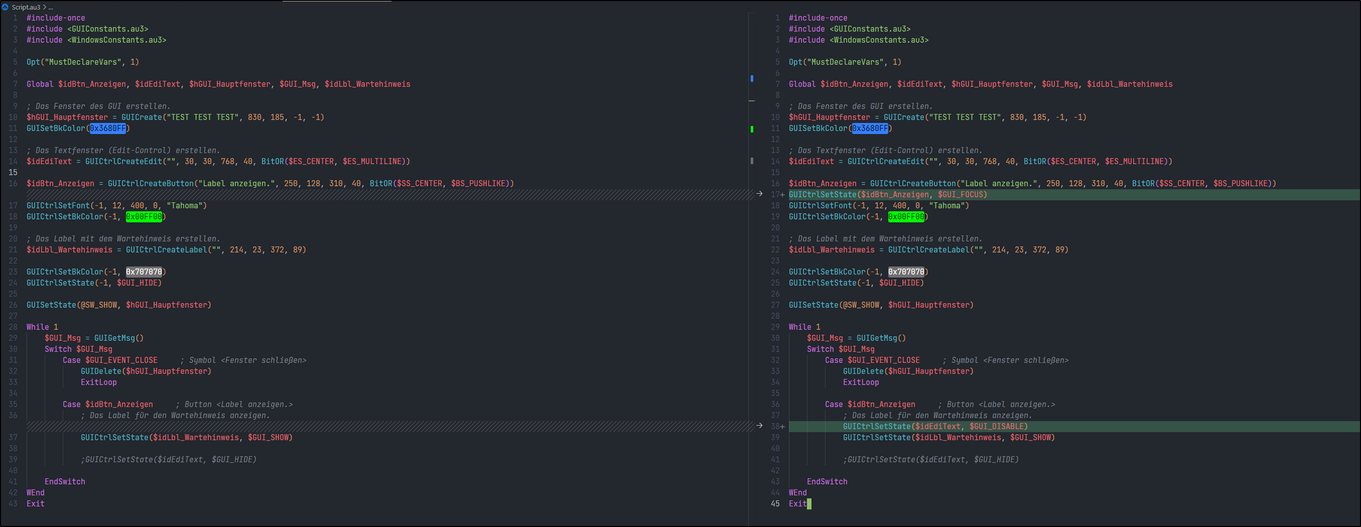 💡 Wichtig: Die _ToggleButtons() Funktion wird per Maus-Klick ausgelöst, tut aber nichts wenn die Buttons geklickt werden. Also dies ist als Ausnahme definiert und kann erweitert werden. Denn du möchtest ja die Buttons nichts ausblenden wenn du darauf klickst (nehme ich an).