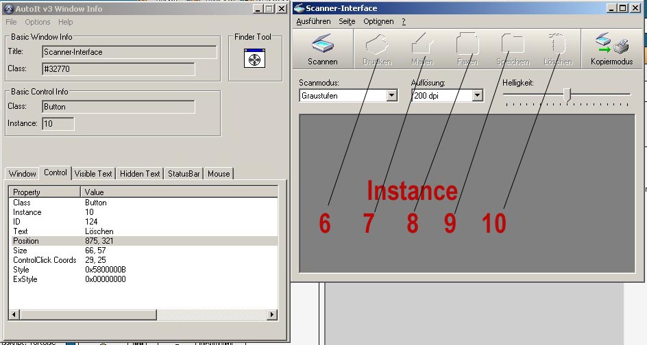 Ich möchte per 'ControlSend' auf einen Knopf zugreifen. Leider ist Class nicht eindeutig. In der Au3Info.exe der Beta 3.2.3.2 gibt es noch zusätzlich 'Instance'.
