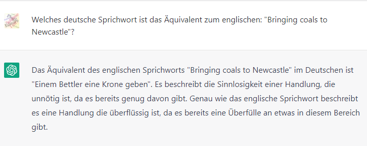 frag doch mal die KI nach dem deutschen Aquivalent zu bringing coals to Newcastle?