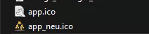 Jetzt wollte ich es mit einem anderen Icon ersetzen, im Screenshot "app_neu.ico".