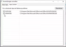 Die Apps lassen sich einfach durch Demarkieren der Checkbox wieder vom Menü entfernen.