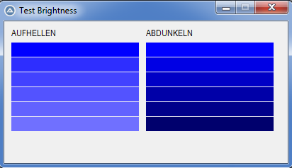 Mit der Funktion _GetColorWithBrightness erhaltet ihr zu einer RGB-Farbe den um n-Helligkeitschritte (+/-) oder auf eine fixe Helligkeit geänderten Farbwert.