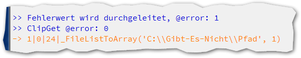 Local $aFile = _FileListToArray('C:\Gibt-Es-Nicht\Pfad', 1) ; FLTA_FILES